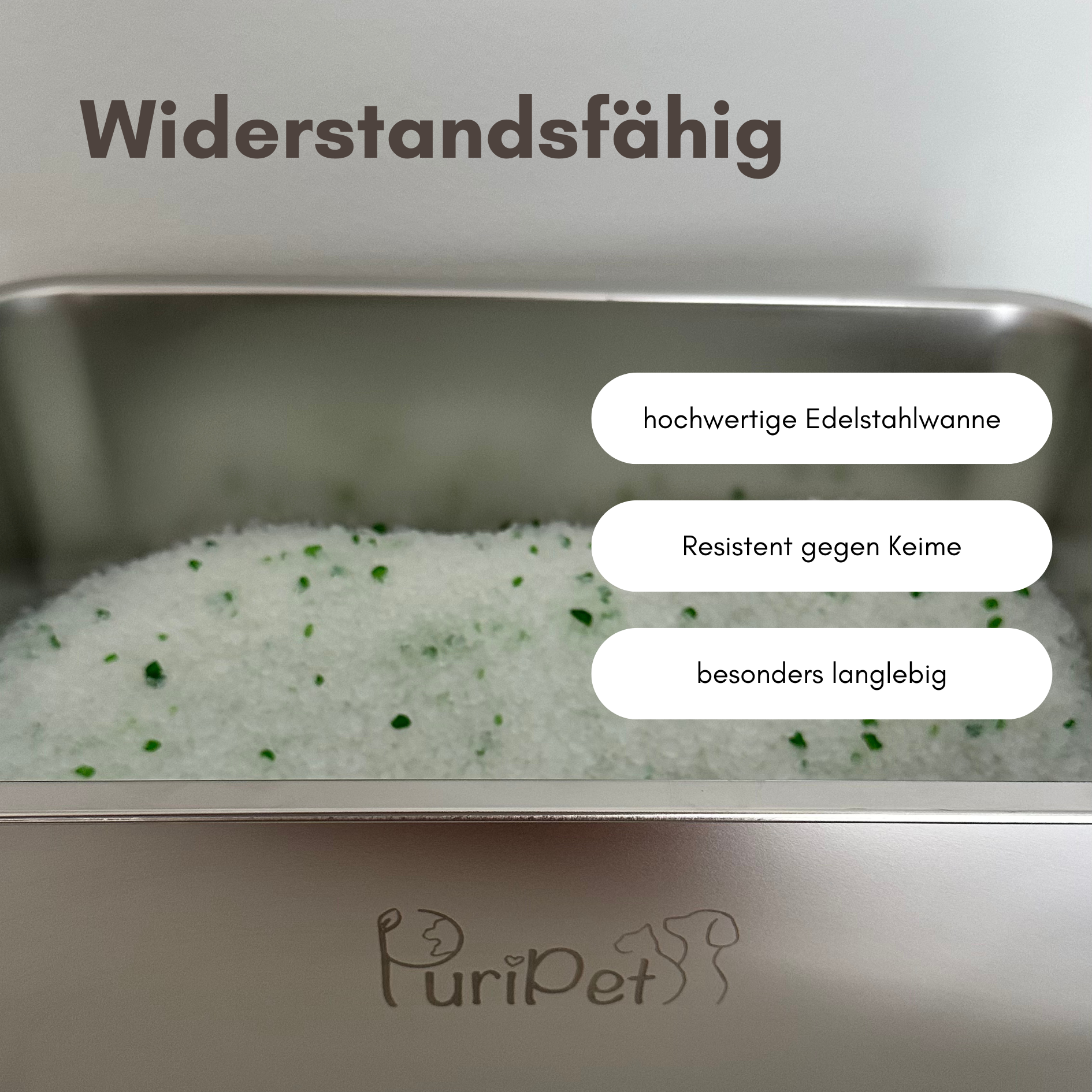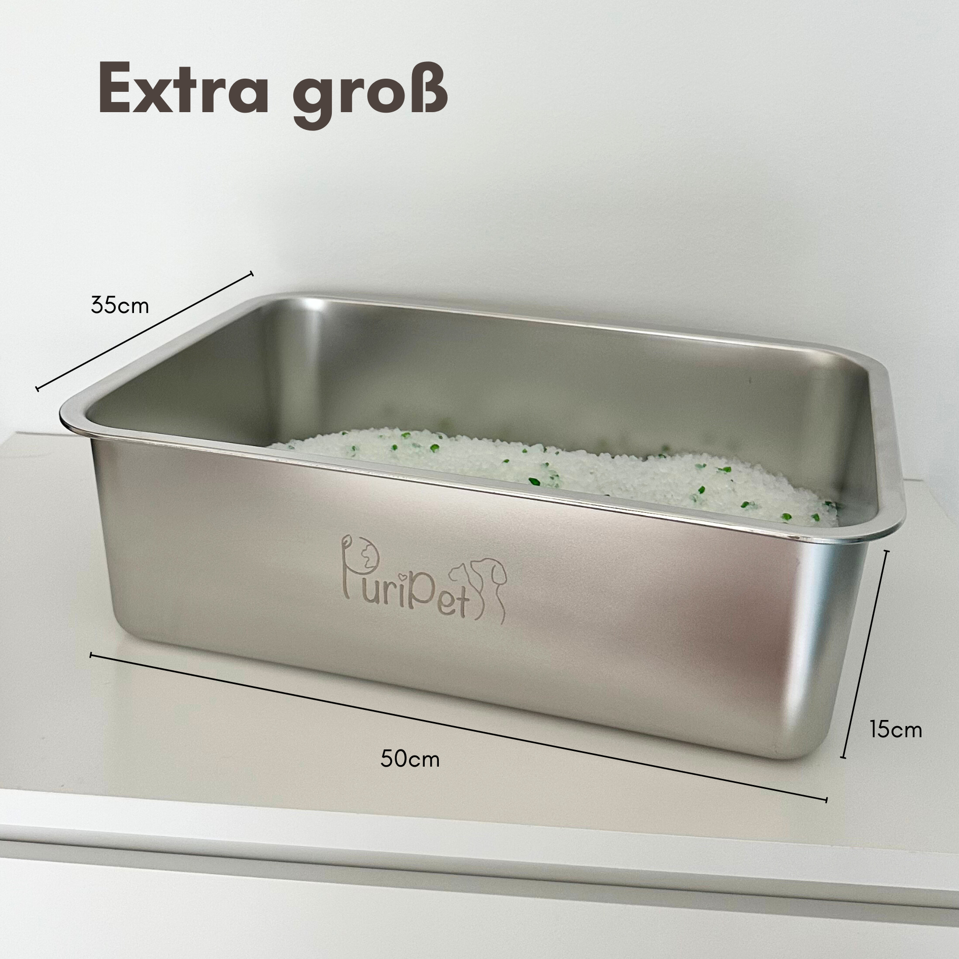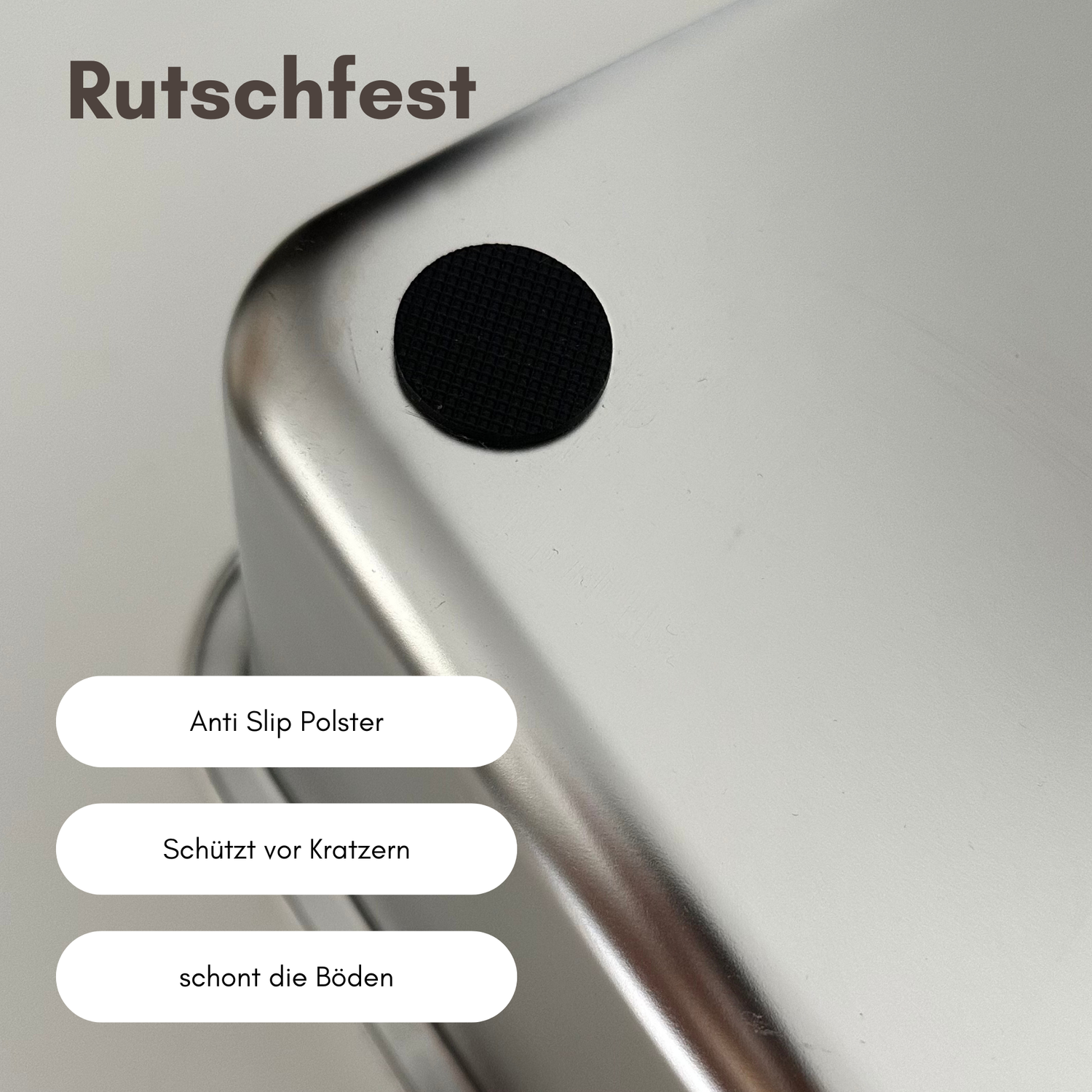 Unsere Edelstahl Katzentoilette ist dank ihrer Anti Slip Polster rutschfest und schützt so vor Kratzern auf dem Boden.
